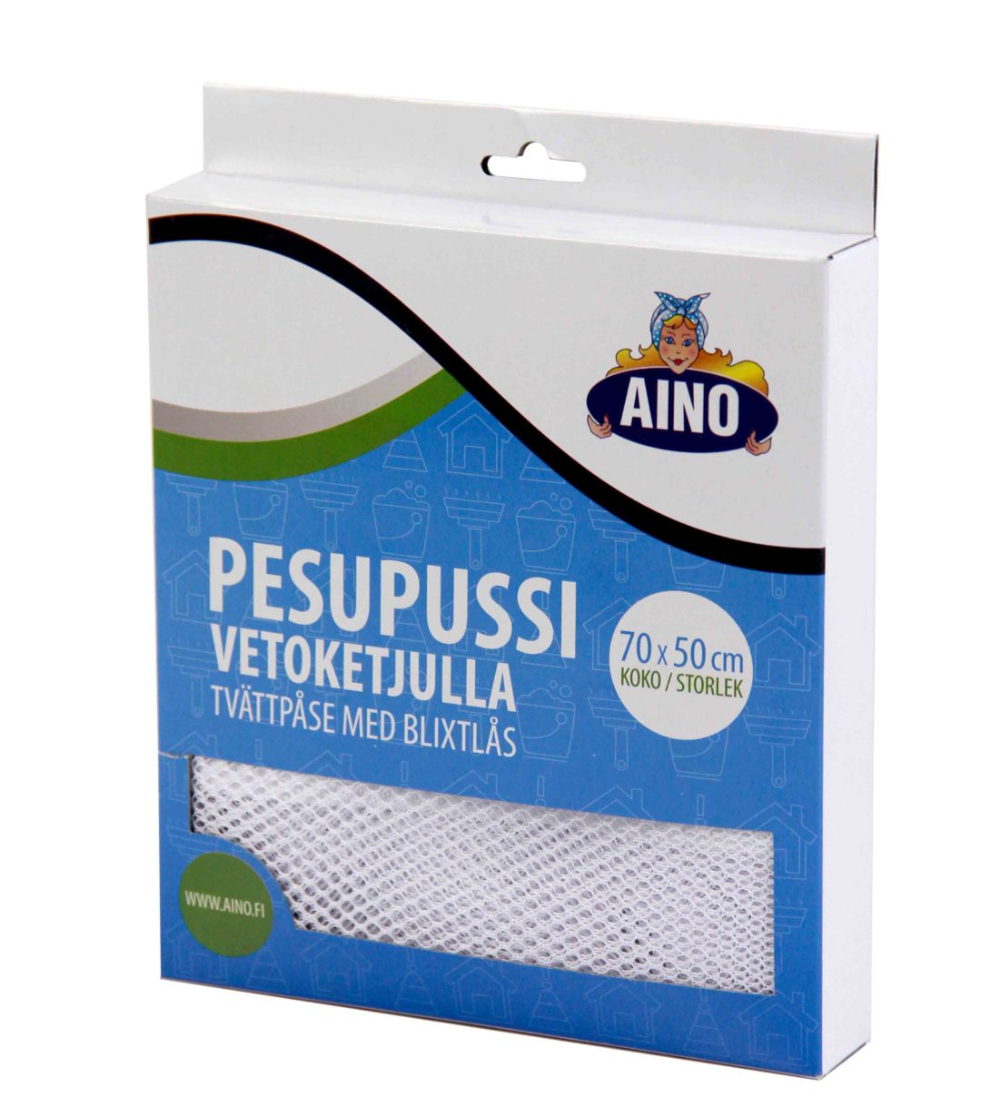 Aino valikoimassa on myös rintaliivien pesuun suunniteltu erikoispesupussi. Se myydään kaupoissa nimellä Aino pikkupyykkipussi.
